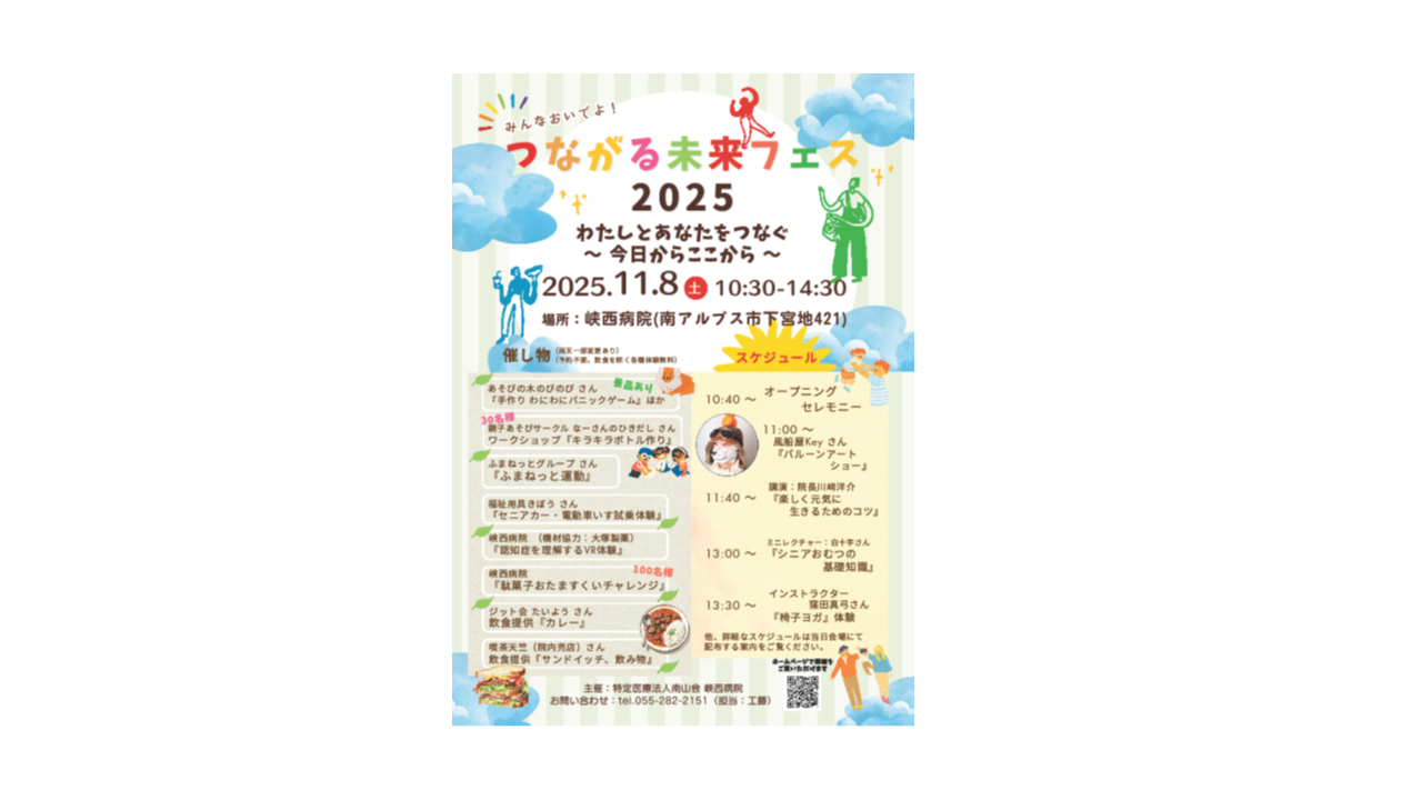 2025年11月8日(土)特定医療法人南山会 峡西病院 主催で「つながる未来フェス2025わたしとあなたをつなぐ~今日からここから~」にてFACEDUO体験会コーナーを設けて頂きました。